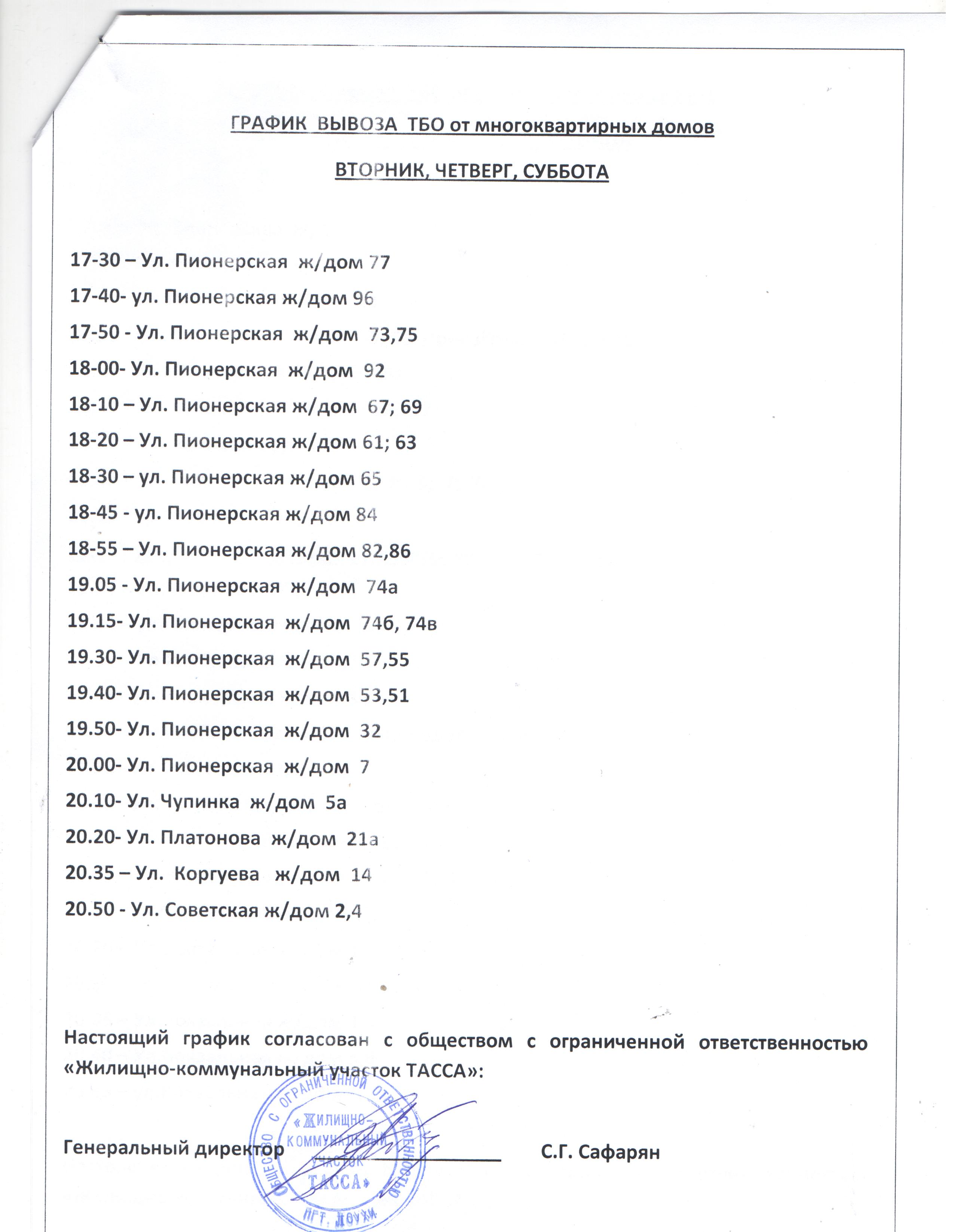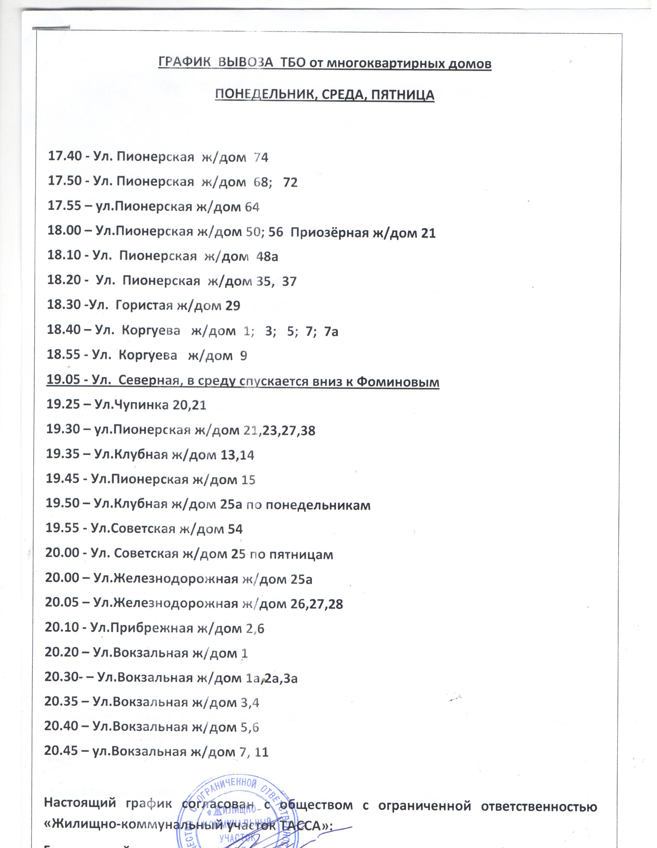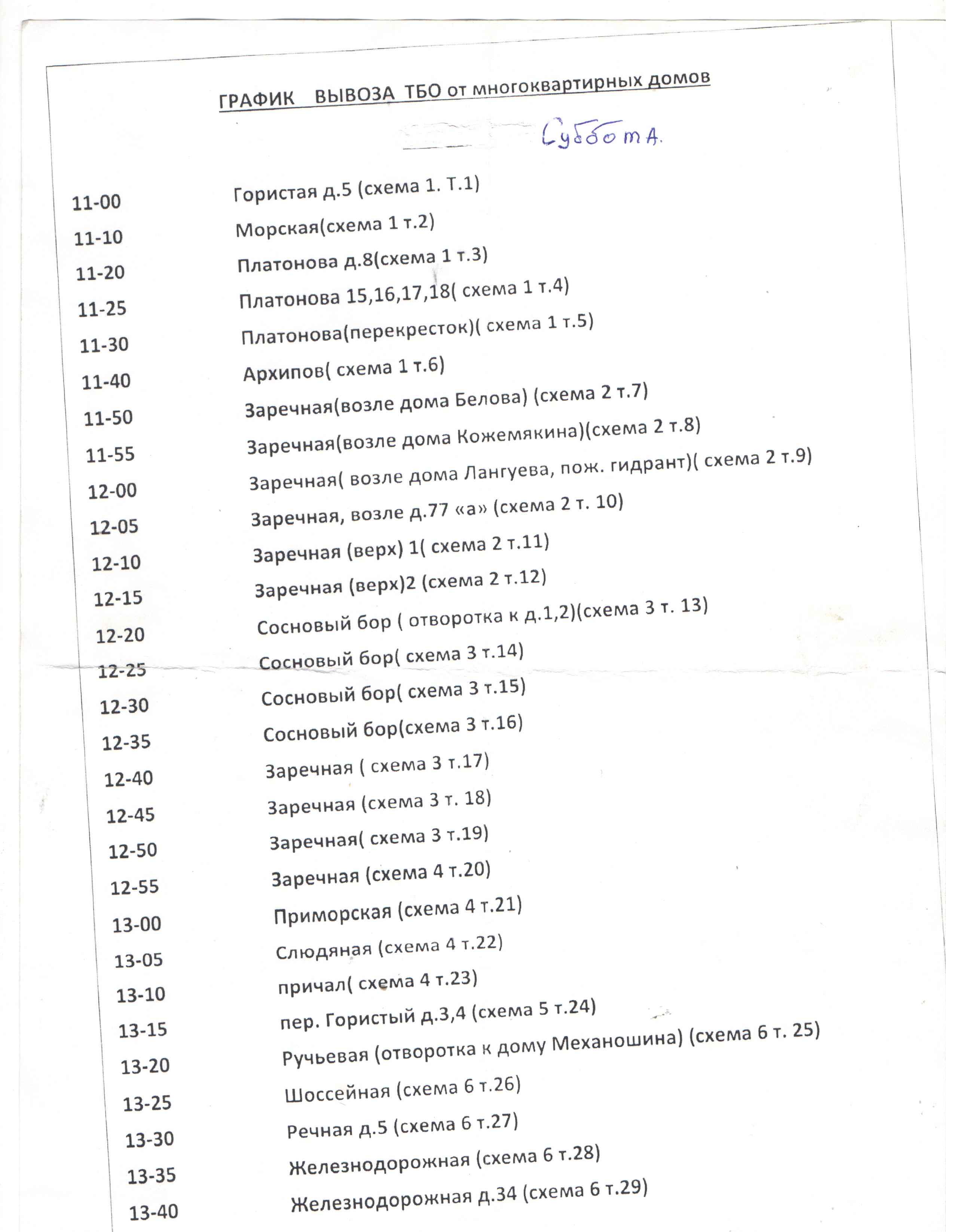 График вывоза Чупа 2